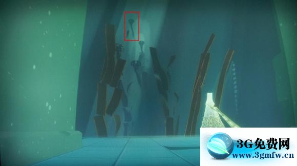 下图:取完第2个符文之后就进入下一区,有水母跟海带的地方,第3个符文在下图红框处的水母上面(最高的那只水母),如果看不到,可以过了此区再回头往上看,就会很明显看到第3个符文
