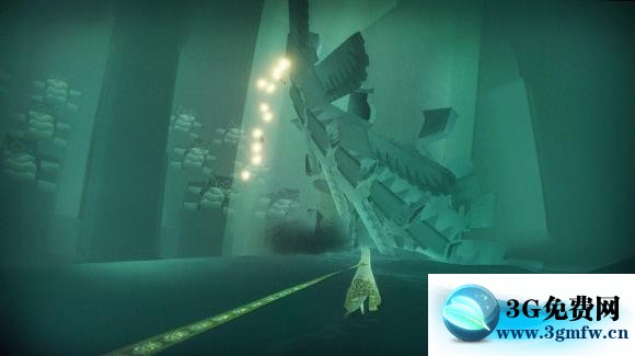 下图:攻击性物种登场,它会用探照灯搜索地面,只要被它的探照灯照到...就等著被它吃掉一大块的围巾(围巾会变短),所以请避开它的探照灯,这个区域没东西可拿,请快速走过!