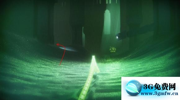 下图:走到下一个区域后,这时会有那个攻击性物种秀给你看它待会会吃掉中间那团马那,而下图红色箭头方向也是本章唯一的壁画(在墙壁的转角而已)