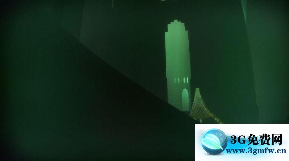 下图:取完壁画后,若是有同伴随行,可以走左手边的路,此法可以完全避掉被探照灯照到的危机,不过需要有同伴随行互相回复围巾能量飞过图中的拱门(共二个)