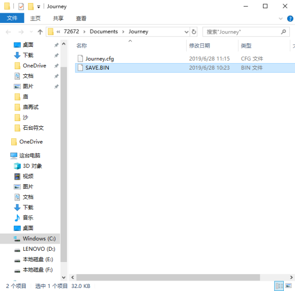 3、文件夹中名为“SAVE”的BIN格式文件即为风之旅人在此电脑上的存档