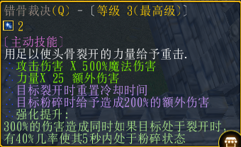 3倍伤害,20%的概率让敌对裂开。(TB这个翻译)