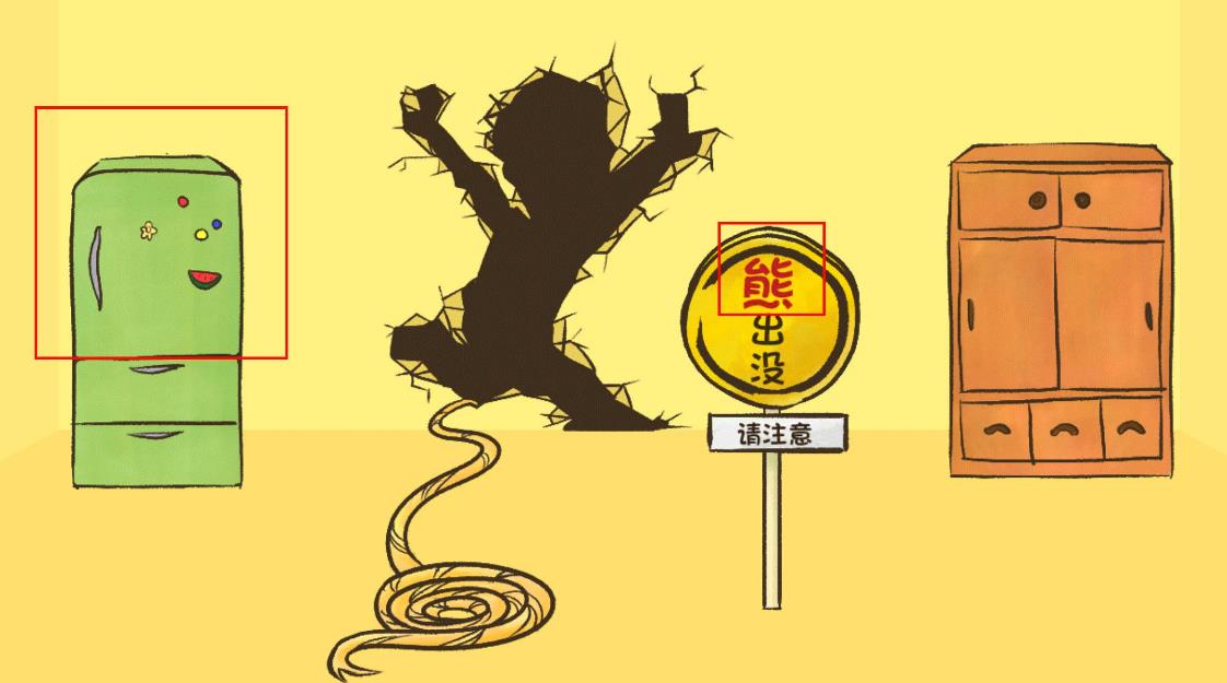 打开冰箱,收集写有“爷”的牌子,用这快牌子覆盖“熊”字。