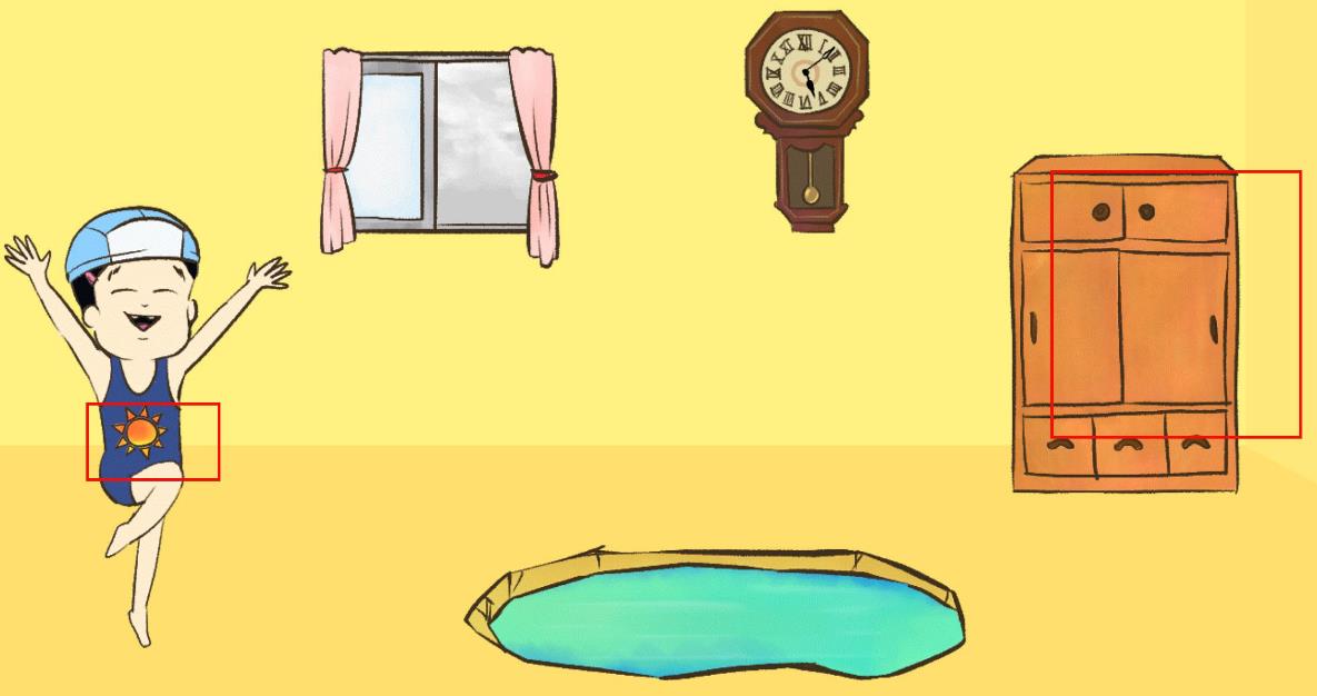 收集妹妹身上的太阳,拖到窗外,收集木橱柜里的放大镜?,拖到窗户旁。