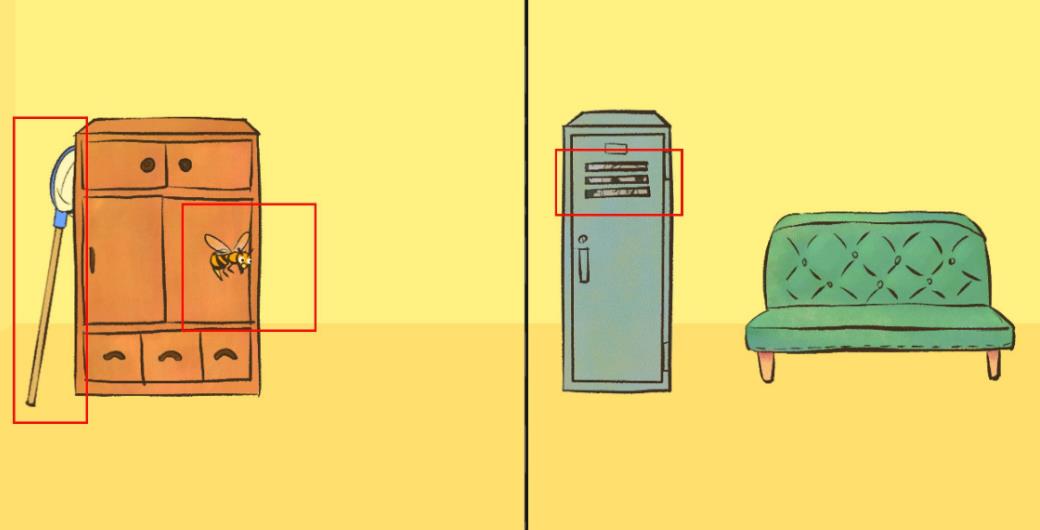 收集网兜,拖动网兜至蜜蜂?,收集蜜蜂?,拖动蜜蜂至铁柜子。