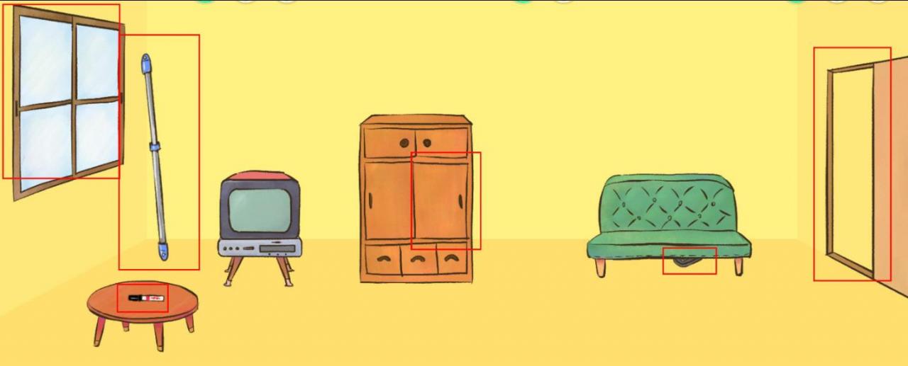 拾取桌上马克笔,用马克笔把窗涂黑,打开木橱柜中间层右边的柜门,拾取里面的碟片?,拾取杆子,用杆子把沙发?️下的电视遥控器扫出来,拾取遥控器和杆子,使用杆子拖到门后撑着,用遥控器打开电视?,把碟片?换上。
