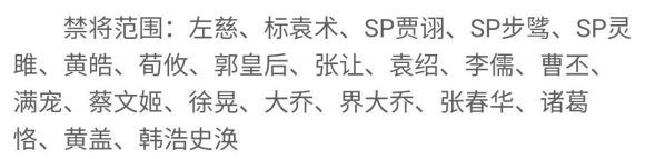 虽然官网显示只有两个禁将,但其实因为锦囊修改很多其他武将也是不可用的。以下为18年龙舟禁将,仅供参考: