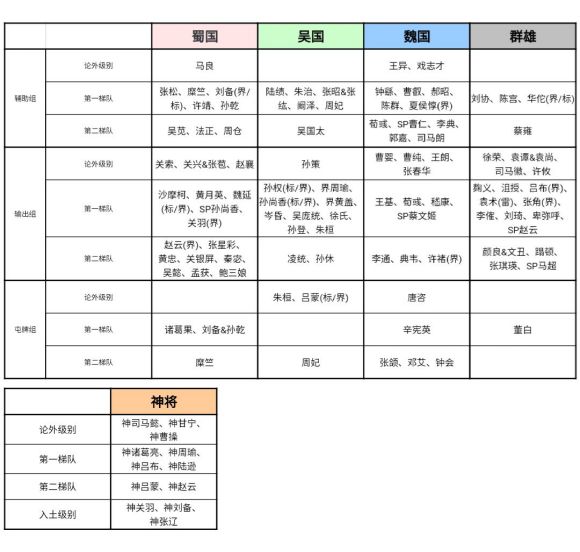 为此本兔做了个龙舟武将分档表,做得比较匆忙,难免有疏漏,欢迎指正。另外,接下来会按势力对武将进行具体分析。