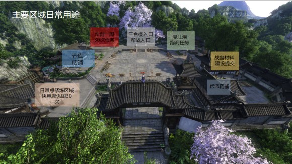 繁荣和安定拆建建筑开活动的时候会需要、现在帮派等级上限是7级,但是帮派成员需要做备战活动升级,一般我们来回拆产业或者回春馆、这点到不担心 帮派主要NPC参考分布 老友网www.andlaou.com免费为你分享