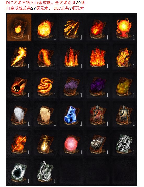 黑暗之魂3《DarkSoulsIII》咒术全咒术总共30项、白金成就总共27项咒术、 DLC总共3项咒术