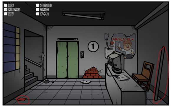 开始寻物,自动存档,首先检查目前的房间——住院部。收集地上的酒精。左侧的柜子需要钥匙打开