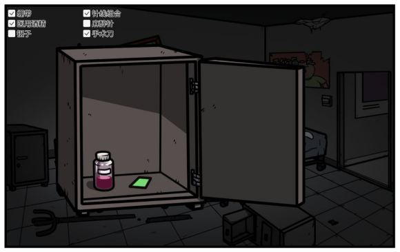 用钥匙打开之前住院部锁上的柜子,得到麻醉药与绿色卡片
