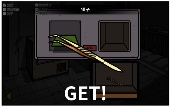用绿色卡片与钥匙在合成仪处合成镊子