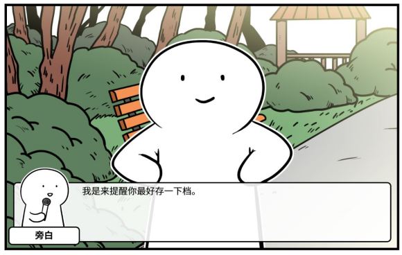 由于没有与双马尾的约定,所以只能来到公园露宿街头。此时旁白会出现主动提示存档