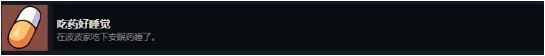 * 使用代币4投入,得到扭蛋,里面是安眠药,吃下后+999睡意,达成成就——吃药好睡觉