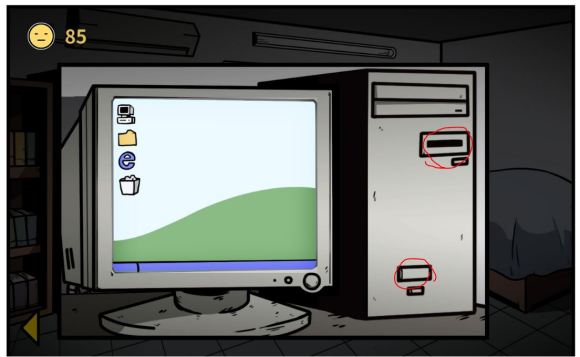 10. 返回波波卧室,打开电脑,插入软盘。修改波波的求职简历,修改时的选项与剧情无关,修改后+40睡意