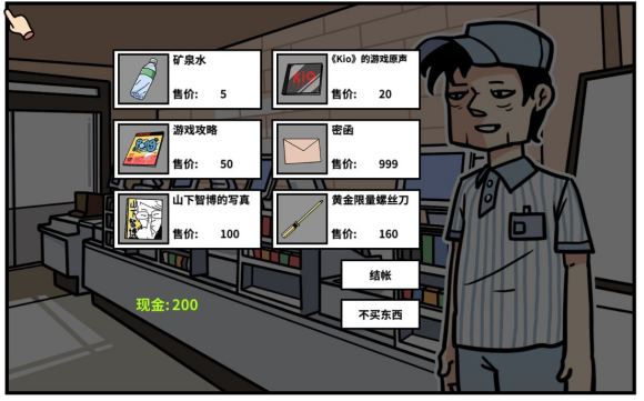 来到便利店买东西,这里是影响后续剧情的关键地方,每一种商品都与剧情线路选择或成就有关(密函除外)。