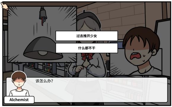 与她对视一会后,男主想主动搭讪,打破尴尬局面。这里进入第二个BE抉择