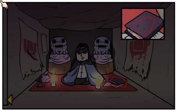 来到楼上,与街机厅老板兼男主的好友米高对话。之后向右进入米高房间,点击书,打开后得到代币3