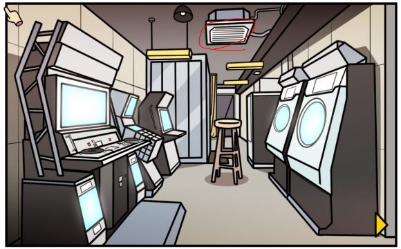 向右切换场景,在纸箱里找到代币2,同时收集坏机前的凳子