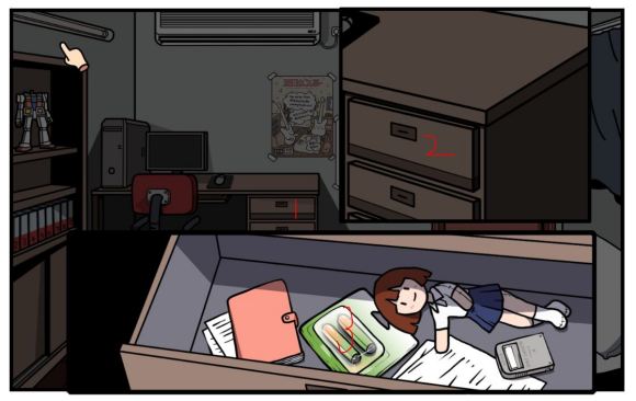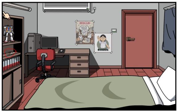 这里会有一个关于手机道具与使用道具的小教程,根据指示拿到书架上的遥控器,使用后发现没有电池,然后找到抽屉当中的电池后在使用。这时就可以关上空调了。完成以上流程后自动存档