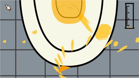 点击马桶,就可以上厕所,这里有一个小游戏。点击鼠标开始撒尿,长按鼠标定住方向。