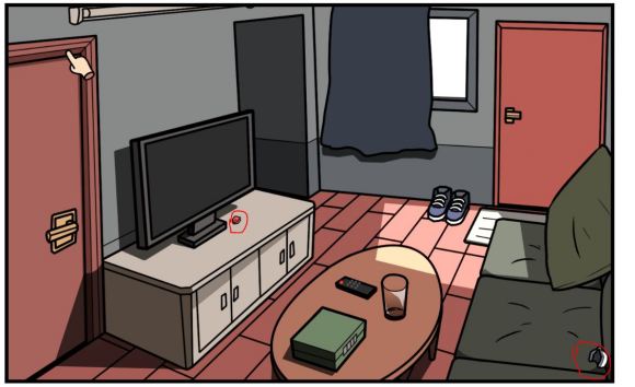 返回客厅,在两个电视柜中分别找到钥匙与充电宝,电视旁和靠枕下分别找到头部零件CD