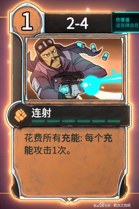 那么问题来了,在连射用光所有充能后,如何累计充能呢。答案就是能力牌--眼罩。每次花费充能都向随机目标