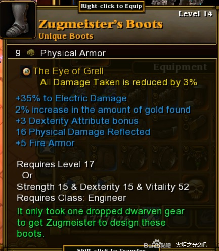 14级点出蜘蛛雷后可以多次刷牛头boss,除了3%免伤眼球,还可以刷到一件有用的鞋子: