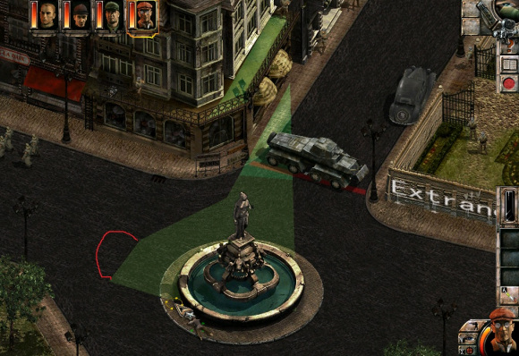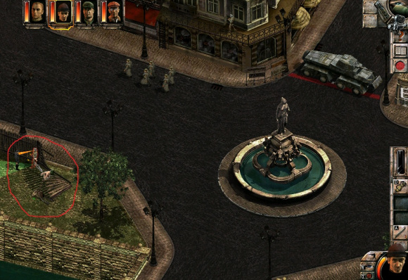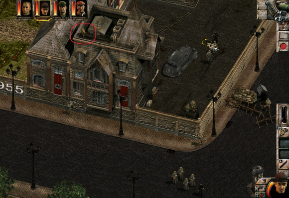 下一步就是间谍去拿德军军服了,首先刚才吸引巡逻队的司机,移动到破房子里,巡逻队就会继续正常巡逻了。