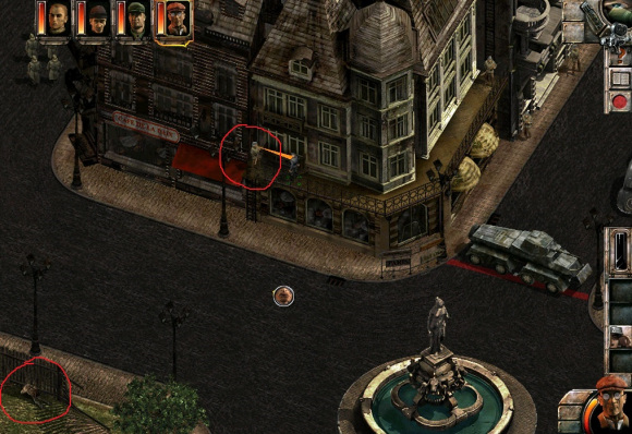 间谍吸引这个步兵,水手爬过来飞刀消灭。捡弹药的动作就不再说了,刚才台阶那里的三具尸体,可以让间谍去抛尸,当然放在那边问题也不大。注意间谍是不能被巡逻队看到的,他们都是盖世太保,会识破间谍的身份。