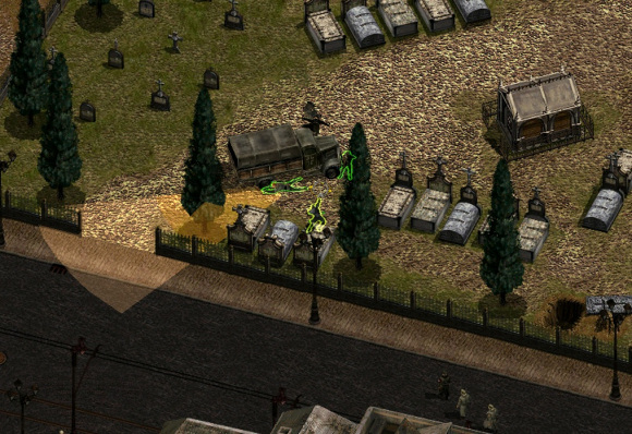 伏击地点,正好是下一组3人巡逻组的视线外,这点非常好,有充分的时间可以补充弹药,如法炮制,狙击手先后一共扫射了5批3人组巡逻队,墓地门口尸积如山。