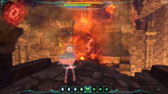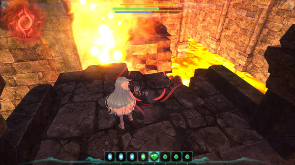 控制机关两次来回把怪全部清掉一个不留,接着在靠近神像那边启动机关过去,在经过第一个平台时立刻跳上去,接着赶紧走到第二层跳到机关的上层,随后冲向第二个平台的宝箱。