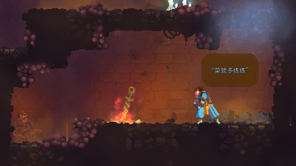 (原图为一个随机刷出的房间 内部需要牧羊符文,是黑魂系列的致敬 查看完后回到入口可以杀死一只僵尸获得大量细胞)