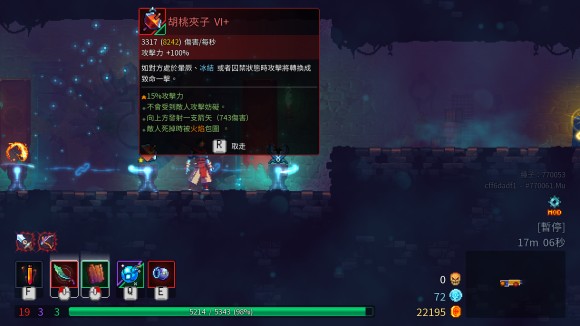 墙壁隐藏区域:一个类似β的符号 武器攻击或近距离R均可触发 可能掉落回血食物 金钱道具等