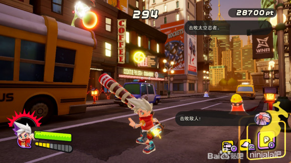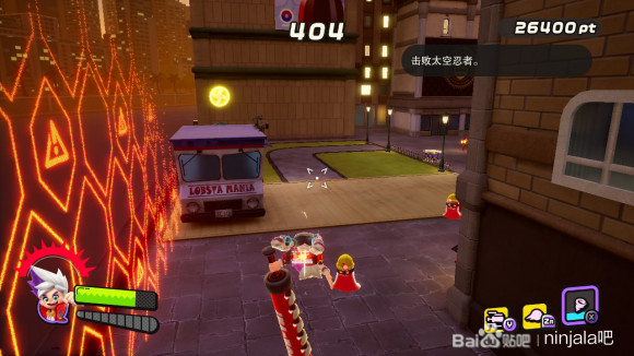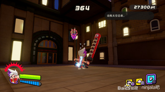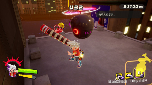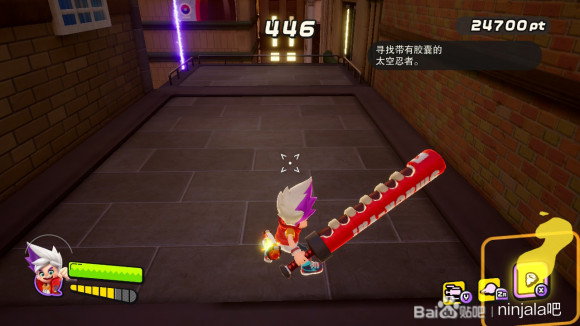 我们首先使用泡泡射击定住紫怪将其解决(不要干扰我们与黄胖的摔跤活动)