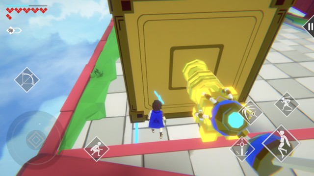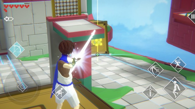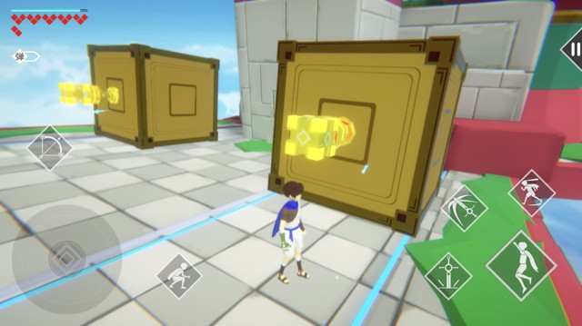引爆左边的箱子把手,让大白把箱子拉过来。拉过来以后再在上面插一把剑。
