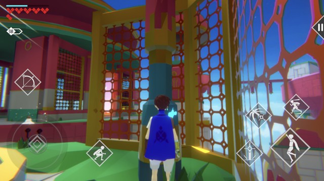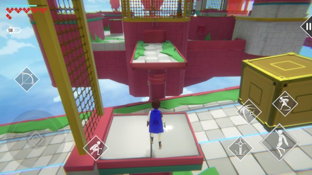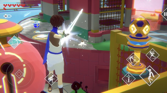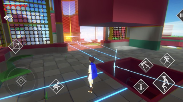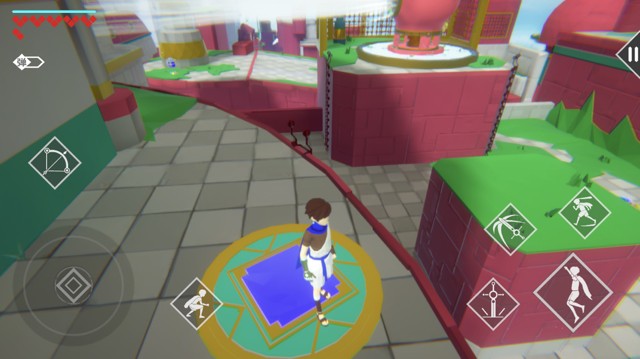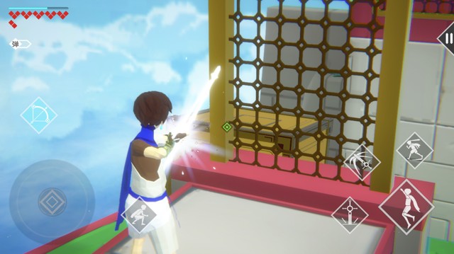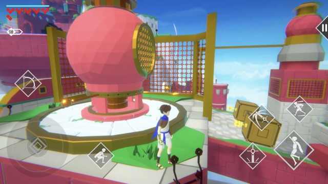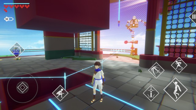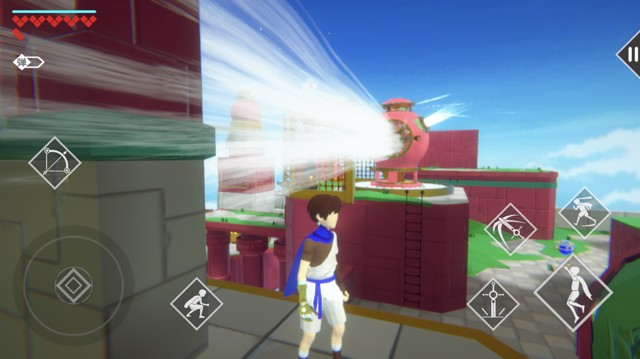 OK,准备完毕。回到第一个吹风机,把它调整为朝向正前方。大白被吹走后,用剑链接两个门,再把大白对面的那个把手也连上。