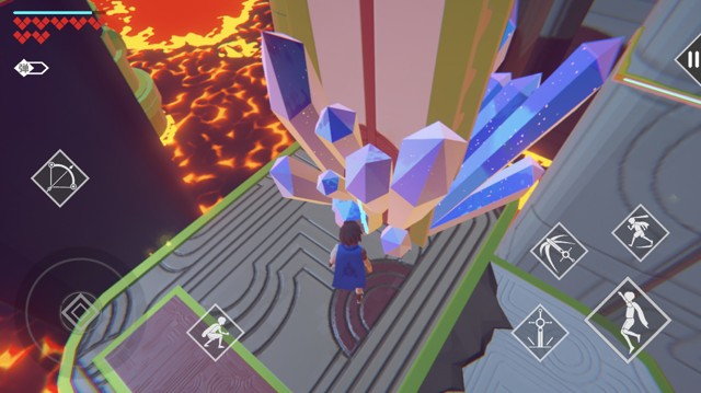 过了长条石头,打爆右边的水晶开盒子。