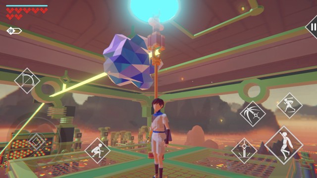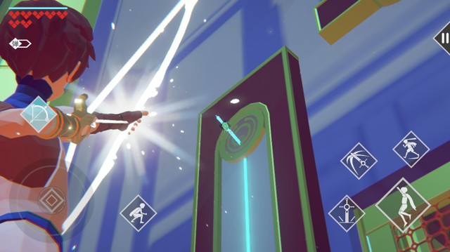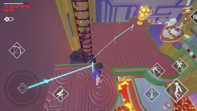 然后来到难的要死要死的缆车部分。调整主角的姿势,让主角通过广告牌。遇到横着的管道要跳过去。路过一个岩石平台,上去,利用跷跷板跳上转过来的缆车。射爆前面的晶石。这里因为分身乏术所以都没有截图,非常抱歉。跳到平台上。