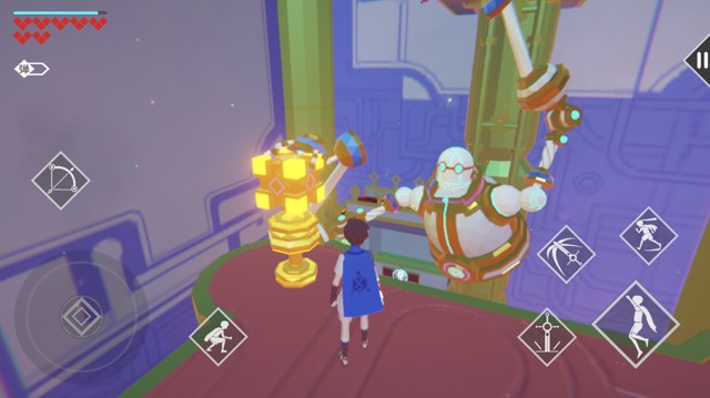 打开开关,趁大白上来的时候迅速跳到升降板上。