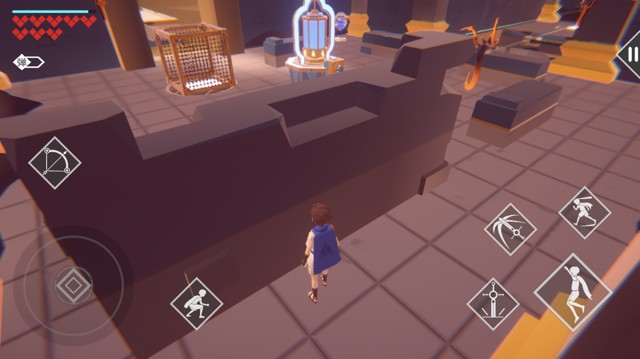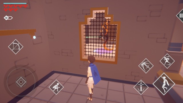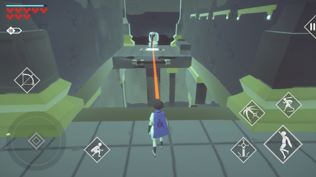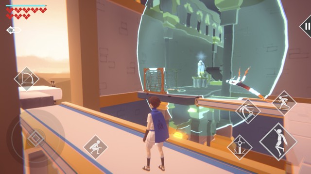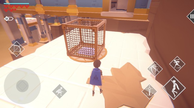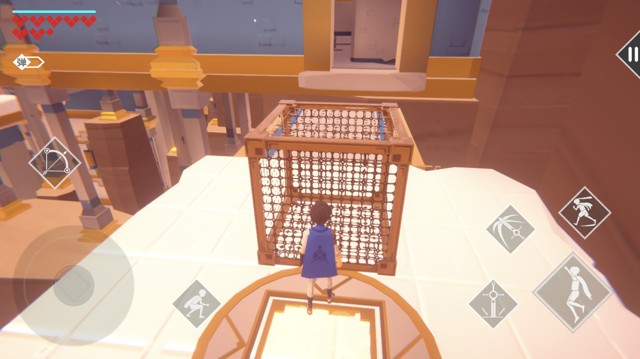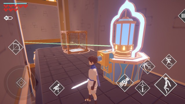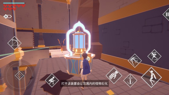 打开装置让怪物石化。 趁怪物定格赶紧跳过去。