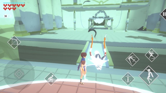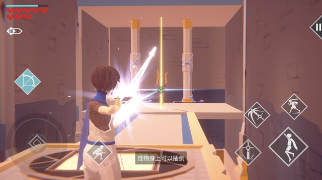 这里不要贪,别老想着一口气在两只怪物身上插剑。人一着急,手就不稳了,容易把剑插地上?同样的办法解决另一只。第三只掉下来了,咱们不和它硬刚,咱们召唤大白把咱们拉过去。
