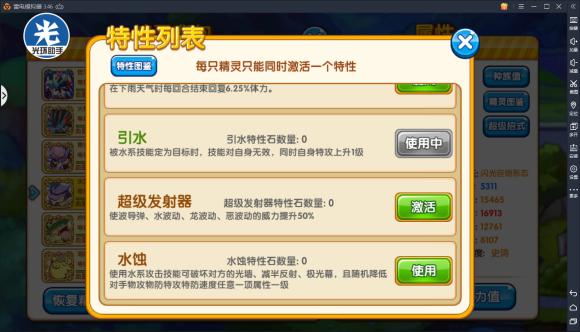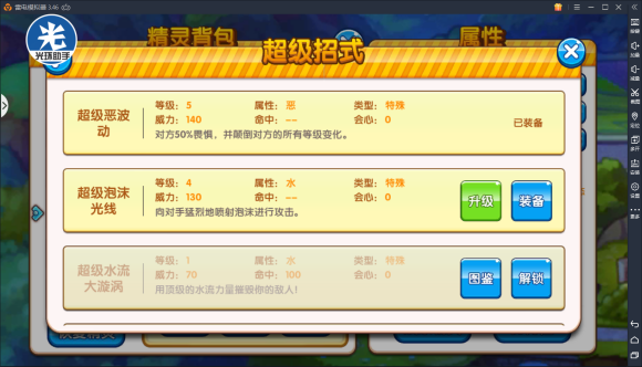 接下来说说我的配招,因为我是保守,再加上专属加攻。所以我的选择是带钢本,怼黑梦。而我也说了最好带恶波动。所以我的选择是回复+高速+钢本+恶波动+超级泡沫光线。当然,他弱点如大多辅助一样,格子很缺,就看你们各人取舍了,在没有钉子的局可能作用不是那么大。而且它回复不是那么强,还踩地钉,很容易死。在这方面他不如清雾天蝎。但是我现在天天打的都是6红,各种水君,所以我特性选择是引水。所以综合来说,这还是一个比较好用的宠,即使没钉子也能抗比较热门的妖等等,所以我给他的评价是A左右。