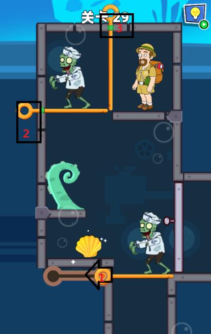 救救小老弟第29关怎么过? 救救小老弟攻略第29关 1.点击最下方的杆子将丧尸送进去再关上。 2.点击左边的杆子让丧尸和触手同归于尽。 3.拉动最后一个杆子开溜。 老友网www.andlaou.com免费为你分享