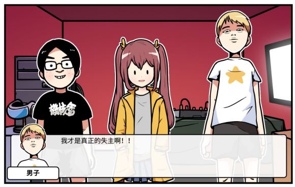 稍后真正的失主前来,是一个黄发,身穿带黄色大星星的白T恤衫的高个男子
