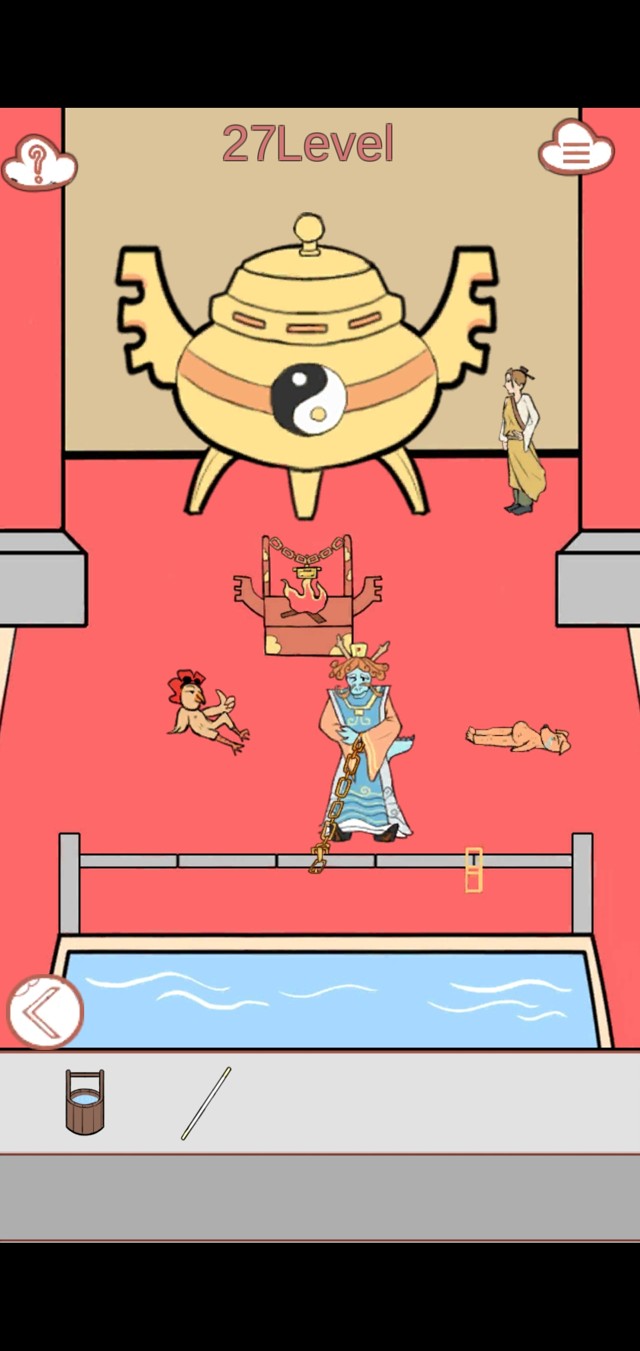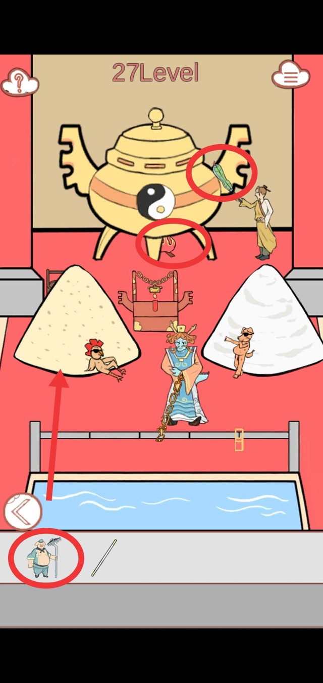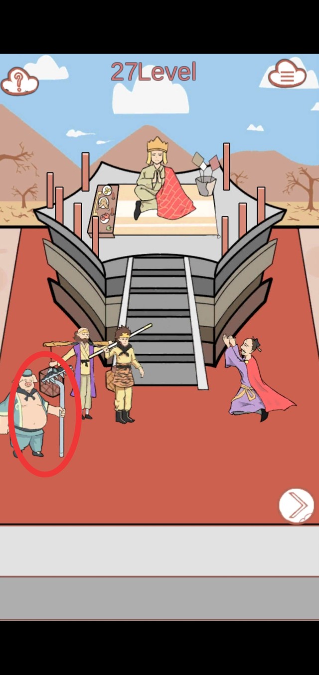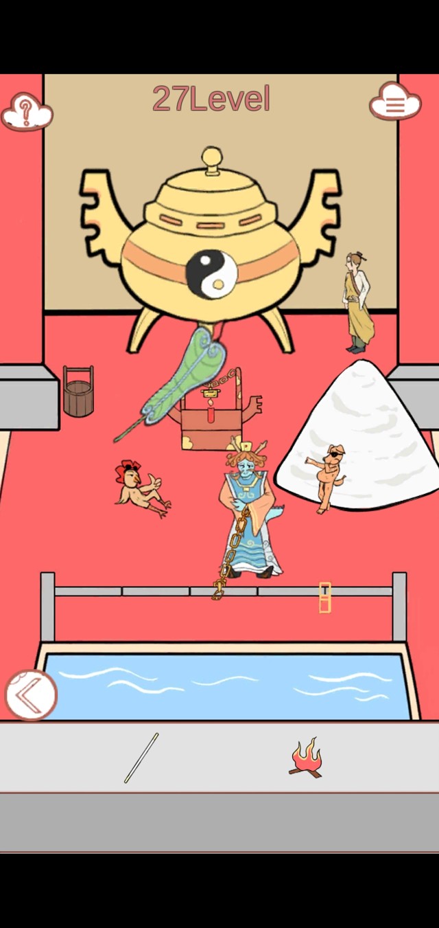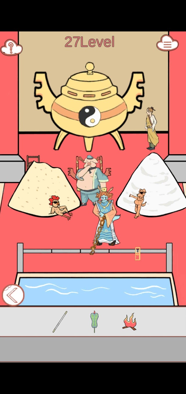 取经是不可能被阻止的第27关怎么过? 取经是不可能被阻止的攻略第27关 第一场景,得到猪八戒,第二场景,得到扇子,火,猪先吃米山,之后扇走面山,拿水桶,打水,用火烧锁头,变红后浇水,触发剧情,过关 老友网www.andlaou.com免费为你分享