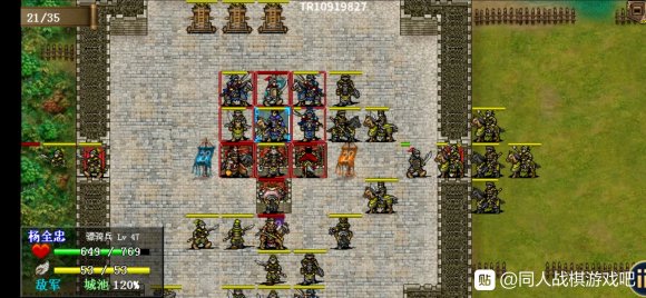 杀完四阵敌军后敌方回合罗成会出现,这时可以派人进内城,步兵到上城池,秦用到左城池,李元霸到右城池,裴元庆到下城池,中间不要有人,不然你会让井阑射成筛子,如果秦用站在【13,14】,梁师泰站在【15,12】,裴元庆站在【15.16】,李元霸站在【17,14】,则铜旗大阵告破,门外敌军停止复活,在此之前内城敌军不会复活,但是门外敌军会复活,可以把内城杀的差不多之后再破阵,不然秦用容易死在破阵地点,普通难度25回合前击退杨全忠(非常容易)获得宝物金缕战袍,李如珪可以去杀骑兵,山贼靠徐茂公慢慢吹,秦琼那路屈突盖到一定时间可以送死,然后王君可下来杀完剩下的伏兵,如果进入隐藏关挂锤求友,齐国远会救梁师泰一命,未进入隐藏关则梁师泰(强力输出)命丧铜旗阵,永久离队。