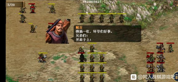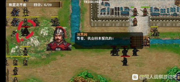 自古黑化强一倍,洗白弱三分,开场不要有任何犹豫,赶紧选南门(刘黑闼猛的要死,友军完全不是对 手),选南门后敌军降攻击,下路没压力,步兵弓兵两件生效,可以带六韬练武器,史大奈可以带八卦宣化斧或者力士套,张公瑾随便了,上路打法建议罗松开局往城里杀,罗艺退到红圈位置(第三章图),这样罗艺基本没压力了,就算没有防御果照样可以顶住,医生有全屏加血,给罗艺用,南门突破之后就可以进城防御了,坚守或者全灭均可过关,本关难点就是救罗艺,按我的走位基本没问题。