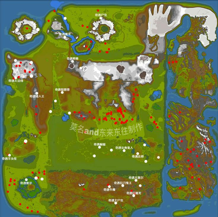 白色点为奇遇点,且在有名字的奇遇周围的无名字白点为这个奇遇的随机点。
